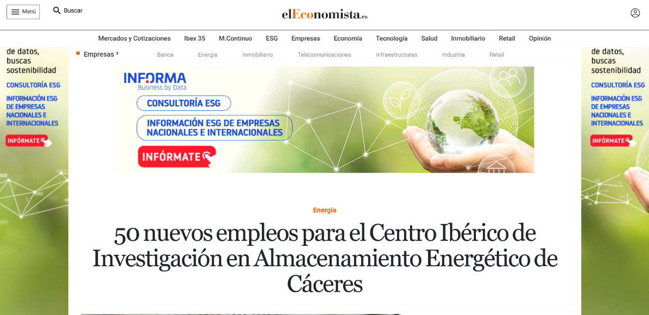 Enlace de la publicación: https://www.eleconomista.es/energia/noticias/12026231/11/22/50-nuevos-empleos-para-el-Centro-Iberico-de-Investigacion-en-Almacenamiento-Energetico-de-Caceres.html