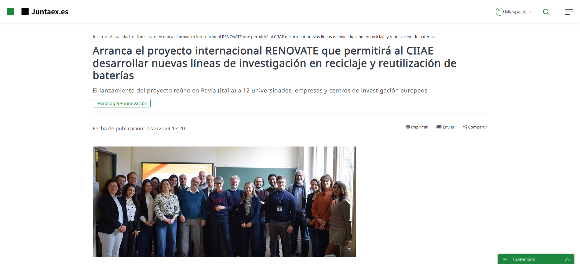 Arranca el proyecto internacional RENOVATE que permitirá al CIIAE desarrollar nuevas líneas de investigación en reciclaje y reutilización de baterías