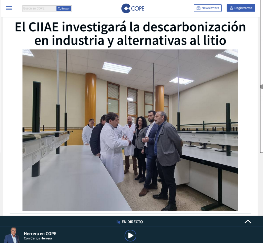 Medio / Plataforma: Cadena COPE / Radio Enlace de la publicación: https://www.cope.es/emisoras/extremadura/caceres-provincia/caceres/noticias/ciiae-investigara-descarbonizacion-industria-alternativas-litio-20230307_2590076