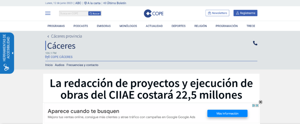 Medio / Plataforma: Cadena COPE / Radio Enlace de la publicación: https://www.cope.es/emisoras/extremadura/caceres-provincia/caceres/noticias/redaccion-proyectos-ejecucion-obras-del-ciiae-costara-225-millones-20221220_2459064
