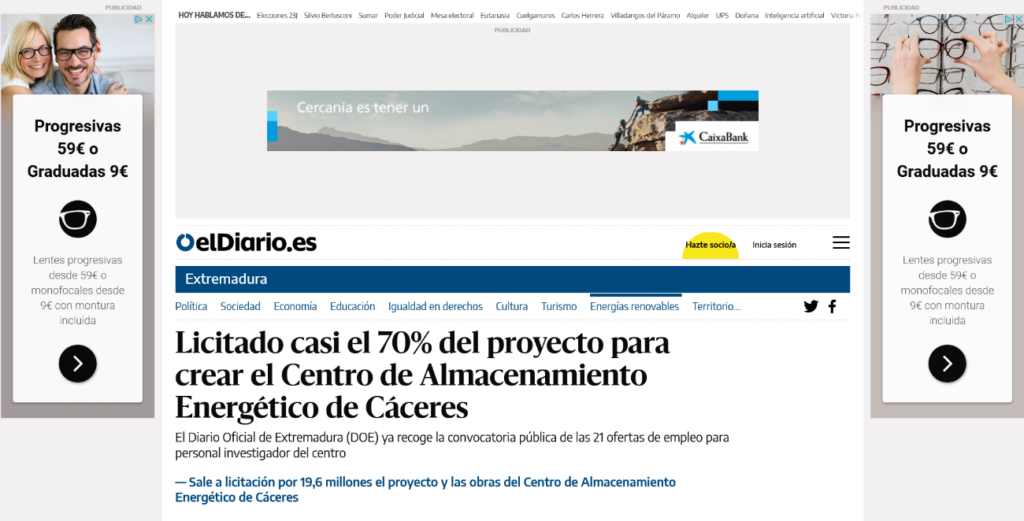 Medio / Plataforma: ElDiario.es / Prensa Escrita Enlace de la publicación: https://www.eldiario.es/extremadura/energias-renovables/licitado-70-proyecto-crear-centro-almacenamiento-energetico-caceres_1_9623536.html
