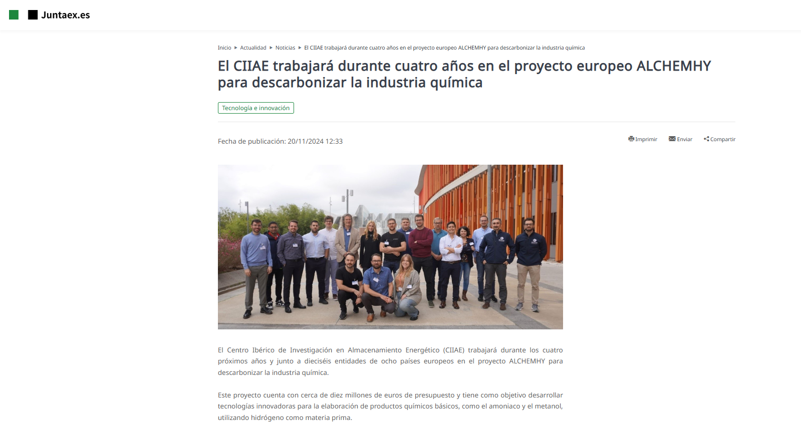 O CIIAE trabalhará durante quatro anos no projeto europeu ALCHEMHY para descarbonizar a indústria química