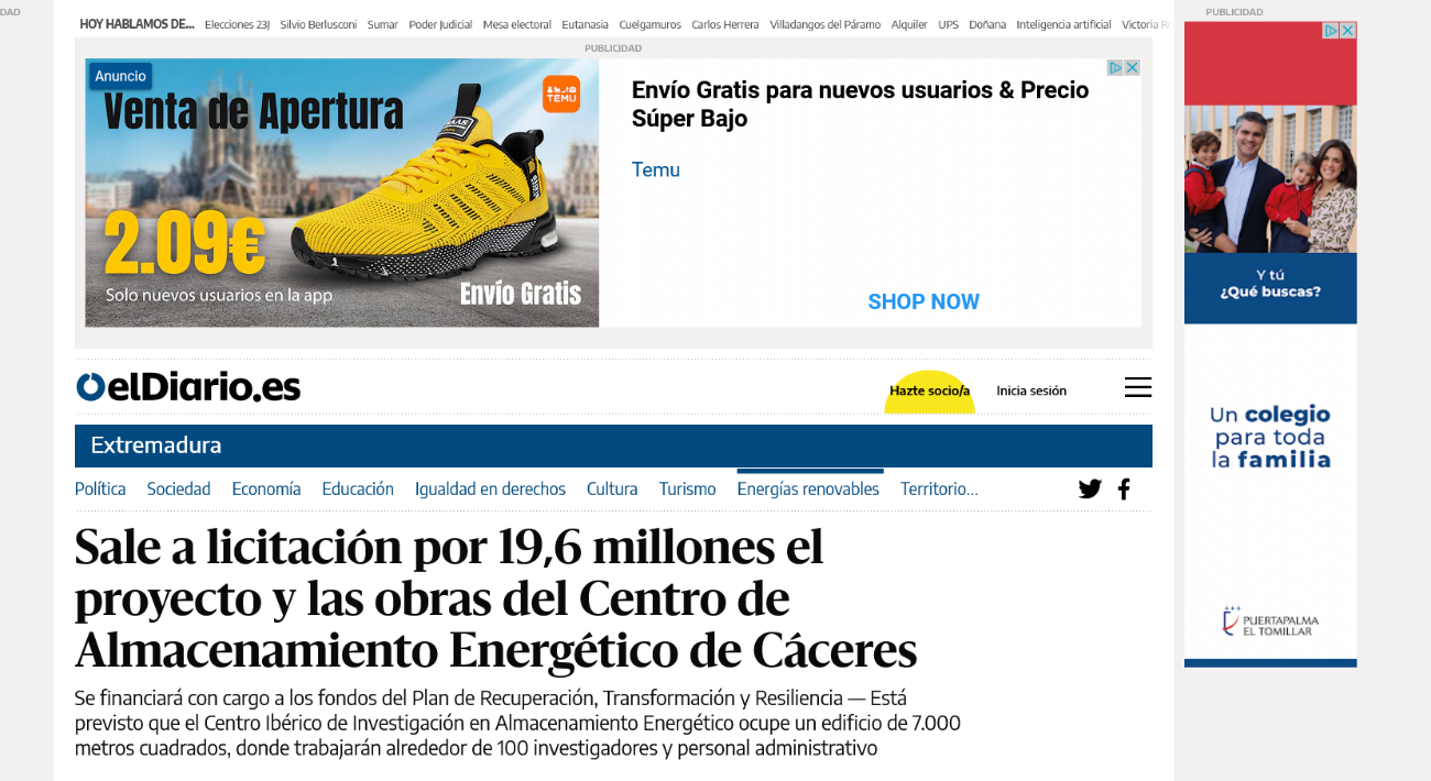 Enlace de la publicación: https://www.eldiario.es/extremadura/energias-renovables/sale-licitacion-redaccion-proyecto-obras-ciiae-caceres-almacenamiento-energia-investigacion-ciiae_1_9183251.html